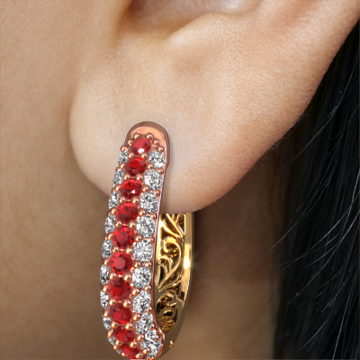 This set of affordable Danika 10.5 A hoop earrings are beautiful small hoop earrings to finish off your look. Our expert jewellers combine the latest techniques with ancient craftsmanship. They make your hoop earrings by hand in our own crafting studio. The ruby of your choosing are set in your hoop earrings with the utmost precision, so light reflects evenly from every angle. In the end you get stunning, unique hoop earrings that match your own style perfectly! Take these rose gold hoop earrings set with ruby 1.7 mm, for example. How do you like these modern rose gold hoop earrings? Simply customize this Danika 10.5 A hoop earrings, using our online tool. Subsequently, your personal affordable Danika 10.5 A hoop earrings will be made by hand by our goldsmiths. Precious metals and gemstones can be customized to your liking. Do you have specific preferences which are unavailable in our online tool? Please feel free to contact us. We will customize your personal modern hoop earrings to your liking.The Danika 10.5 A earrings are passionately made by one of our master goldsmiths.Are you on a budget? Please feel free to contact us, so we can go discuss your options. We offer our hoop earrings at guaranteed best price, because we make them to order. You won't find such a price anywhere else!To make it easier for you, we offer a 30 day return policy. Check our terms and conditions.
