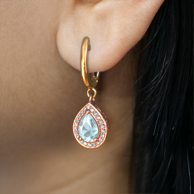 With a pair of exclusive drop earrings, every woman truly stands out. At DiamondsByMe, we create unique and extraordinary jewellery and we make use of the finest precious metals and gemstones. These exclusive rose gold drop earrings are a true work of art! Each tiny detail has been made with patience and passion by our expert jeweller. This requires a keen eye and skilful hand in order for the ring to be carefully created to perfection. And this is exactly what our expert jewellers strive for, perfection! The exquisite aquamarine are set in a way making them seem to shine even brighter. This gives the drop earrings an extra glamorous look. Shown above are our rose gold Ginger 1 drop earrings, set with pear aquamarine. The Ginger 1 earrings are made just for you by our master goldsmith in our own artisan studio.. Customized unique graceful drop earrings are the perfect gift! New exquisite designs are added daily by our team of passionate goldsmiths. And each design can be customized. Simply customize the precious metals and the colour of gemstones which will be used, for example. This makes your design of the unique Ginger 1 drop earrings truly unique! After receiving your order, our goldsmiths will passionately start the creative process of making your drop earrings in our own studio. Because we don't have a big stockpile, these costs will not be passed on to you. Our pricing is proof of that! We offer top quality jewels at lowest price, guaranteed. To make it easier for you, we offer a 30 day return policy. Check our terms and conditions.