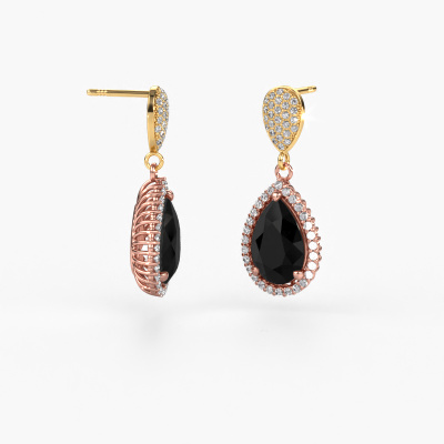 With a pair of exclusive drop earrings, every woman truly stands out. At DiamondsByMe, we create exclusive and extraordinary jewellery and we make use of the finest precious metals and gemstones. These exclusive rose gold drop earrings are a true work of art! Each tiny detail has been made with patience and passion by our expert jeweller. This requires a keen eye and skilful hand in order for the ring to be carefully created to perfection. And this is exactly what our expert jewellers strive for, perfection! The exquisite black diamonds are set in a way making them seem to shine even brighter. This gives the drop earrings an extra glamorous look. Shown above are our rose gold Tilly per 2 drop earrings, set with pear black diamond. The Tilly per 2 earrings are made by a team of passionate goldsmiths and designers. This will make your unique crown jewel eye-catching.. Our goldsmiths passionately create your customized drop earrings to your liking with the utmost care. The rose gold set drop earrings, as shown here, can be customized using our online tool. Feel free to ask our jewel designers for assistance if you want changes made which are unavailable in our online tool. We are happy to answer your questions. Are you on a budget? Please feel free to contact us, so we can go discuss your options. We offer our drop earrings at guaranteed best price, because we make them to order. You won't find such a price anywhere else! To make it easier for you, we offer a 30 day return policy. Check our terms and conditions.