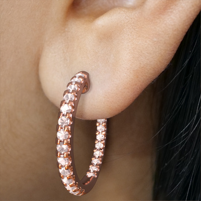 This set of charming Jackie 15 mm B hoop earrings are beautiful small hoop earrings to finish off your look. Our expert jewellers combine the latest techniques with ancient craftsmanship. They make your hoop earrings by hand in our own crafting studio. The morganite champagne of your choosing are set in your hoop earrings with the utmost precision, so light reflects evenly from every angle. In the end you get stunning, unique hoop earrings that match your own style perfectly! Take these rose gold hoop earrings set with morganite champagne 2 mm, for example.