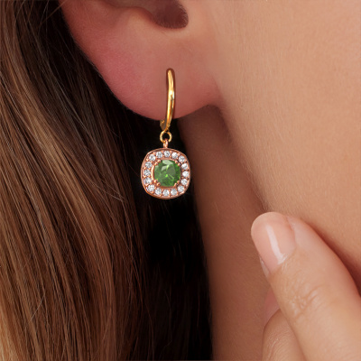 If you are looking for exclusive and personal drop earrings, then these will fit you perfectly. You have the option to add your birthstones to these drop earrings. Each month has its own birthstone. You may use your own birthstone gemstone or that of your children. A priceless gift, even if it is for yourself. Our expert jeweller will set the selected stones in your drop earrings with utter precision, so light reflects evenly from every angle. Here, 5 mm cushion tourmaline green gemstones were used to adorn these rose gold special Marlotte 1 drop earrings. The Marlotte 1 earrings are passionately made by one of our master goldsmiths.. Our goldsmiths passionately create your customized drop earrings to your liking with the utmost care. The rose gold set drop earrings, as shown here, can be customized using our online tool. Feel free to ask our jewel designers for assistance if you want changes made which are unavailable in our online tool. We are happy to answer your questions. Because we design and deliver our own drop earrings, we can offer you drop earrings at a price you won't find anywhere else. drop earrings are made to order, which helps prevent excess supplies, so we can make you a great price offer. We understand it feels risky, buying your drop earrings online, but we will gladly assist in the designing process, taking your budget into consideration.To make it easier for you, we offer a 30 day return policy. Check our terms and conditions.
