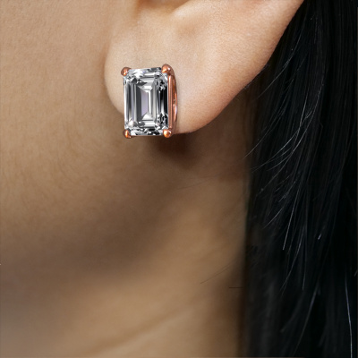 With a pair of exclusive stud earrings, every woman truly stands out. At DiamondsByMe, we create chic and extraordinary jewellery and we make use of the finest precious metals and gemstones. These exclusive rose gold stud earrings are a true work of art! Each tiny detail has been made with patience and passion by our expert jeweller. This requires a keen eye and skilful hand in order for the ring to be carefully created to perfection. And this is exactly what our expert jewellers strive for, perfection! The exquisite diamonds are set in a way making them seem to shine even brighter. This gives the stud earrings an extra glamorous look. Shown above are our rose gold Sam EME stud earrings, set with emerald cut diamond. The Sam EME earrings are passionately made by one of our master goldsmiths.. What could possibly be more beautiful than personally designed chic stud earrings, handmade by yours truly? Please, feel free to customize each model by choosing different precious metals and gemstones. This makes your stud earrings truly unique. These stud earrings can be customized to your liking. It goes without saying that you can also ask us for help. We are more than willing to assist in designing your chic stud earrings. If you like but still have specific wishes concerning customizing your design, such as adding a gemstone which isn't mentioned in the list, feel free to contact us. We will gladly inform you on different options. By using our modern techniques, we can design and customize the finest quality jewels with the utmost care for you. Our stud earrings are always priced 30 percent lower than other jewellers. We make stud earrings to order so we don't have to maintain a large stock. If you have a certain budget, we are more than happy to advice you accordingly. To make it easier for you, we offer a 30 day return policy. Check our terms and conditions.