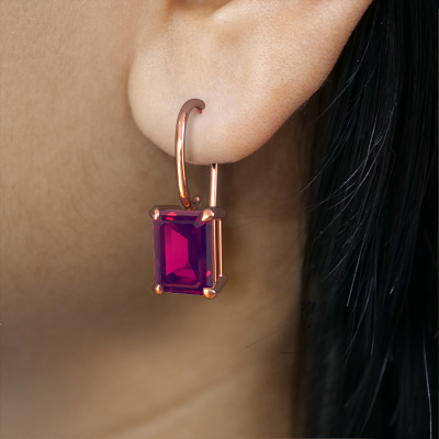 If you are looking for modern and personal drop earrings, then these will fit you perfectly. You have the option to add your birthstones to these drop earrings. Each month has its own birthstone. You may use your own birthstone gemstone or that of your children. A priceless gift, even if it is for yourself. Our expert jeweller will set the selected stones in your drop earrings with utter precision, so light reflects evenly from every angle. Here, 8x6 mm emerald cut rhodolite gemstones were used to adorn these rose gold charming Cleo EME drop earrings. The Cleo EME earrings are passionately made by one of our master goldsmiths.. Customized modern charming drop earrings are the perfect gift! New exquisite designs are added daily by our team of passionate goldsmiths. And each design can be customized. Simply customize the precious metals and the colour of gemstones which will be used, for example. This makes your design of the modern Cleo EME drop earrings truly unique! By using a combination of the latest modern techniques, combined with ancient crafting, we can make all our drop earrings in our own studio. Each jewel is made to order. This is advantageous because we can offer you a price you won't find anywhere else.To make it easier for you, we offer a 30 day return policy. Check our terms and conditions.