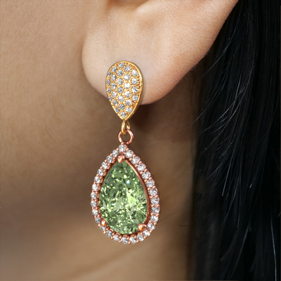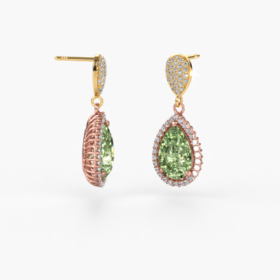 With a pair of exclusive drop earrings, every woman truly stands out. At DiamondsByMe, we create exclusive and extraordinary jewellery and we make use of the finest precious metals and gemstones. These exclusive rose gold drop earrings are a true work of art! Each tiny detail has been made with patience and passion by our expert jeweller. This requires a keen eye and skilful hand in order for the ring to be carefully created to perfection. And this is exactly what our expert jewellers strive for, perfection! The exquisite green lab grown diamonds are set in a way making them seem to shine even brighter. This gives the drop earrings an extra glamorous look. Shown above are our rose gold Tilly per 2 drop earrings, set with pear green lab grown diamond. The Tilly per 2 earrings are made by a team of passionate goldsmiths and designers. This will make your unique crown jewel eye-catching.. Our goldsmiths passionately create your customized drop earrings to your liking with the utmost care. The rose gold set drop earrings, as shown here, can be customized using our online tool. Feel free to ask our jewel designers for assistance if you want changes made which are unavailable in our online tool. We are happy to answer your questions. Are you on a budget? Please feel free to contact us, so we can go discuss your options. We offer our drop earrings at guaranteed best price, because we make them to order. You won't find such a price anywhere else! To make it easier for you, we offer a 30 day return policy. Check our terms and conditions.
