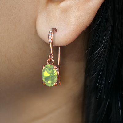 What could possibly be more stunning than a pair of stunning drop earrings? These rose gold Laurie OVL 2 drop earrings are a true eye-catcher. These charming drop earrings are set with oval peridot. We collaborate with the best suppliers of gemstones and they select our gemstones with great care. Your drop earrings are made by hand in our own artisan studio by our expert goldsmiths. Customized chic charming drop earrings are the perfect gift! New exquisite designs are added daily by our team of passionate goldsmiths. And each design can be customized. Simply customize the precious metals and the colour of gemstones which will be used, for example. This makes your design of the chic Laurie OVL 2 drop earrings truly unique!After receiving your order, our goldsmiths will passionately start the creative process of making your drop earrings in our own studio. Because we don't have a big stockpile, these costs will not be passed on to you. Our pricing is proof of that! We offer top quality jewels at lowest price, guaranteed.To make it easier for you, we offer a 30 day return policy. Check our terms and conditions.