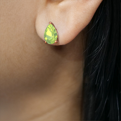 Solitaire stud earrings are both a traditional and a trendy piece of jewellery. Solitaire stud earrings have an open prong setting, therefore, light reflects beautifully on the gemstones. Because the peridot are set high, these traditional stud earrings are a stunning eye-catcher. We will create your solitaire stud earrings by hand with the utmost care in our DiamondsByMe studio. For maximum shine, our goldsmith sets the peridot in the rose gold stud earrings with great care. These solitaire stud earrings are set with pear peridot of 7x5 mm. De Sam PER earrings are passionately made by one of our master goldsmiths.. What could possibly be more beautiful than personally designed traditional stud earrings, handmade by yours truly? Please, feel free to customize each model by choosing different precious metals and gemstones. This makes your stud earrings truly unique. These stud earrings can be customized to your liking. It goes without saying that you can also ask us for help. We are more than willing to assist in designing your traditional stud earrings. If you like but still have specific wishes concerning customizing your design, such as adding a gemstone which isn't mentioned in the list, feel free to contact us. We will gladly inform you on different options.By using a combination of the latest modern techniques, combined with ancient crafting, we can make all our stud earrings in our own studio. Each jewel is made to order. This is advantageous because we can offer you a price you won't find anywhere else. To make it easier for you, we offer a 30 day return policy. Check our terms and conditions.