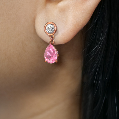 What could possibly be more stunning than a pair of stunning drop earrings? These rose gold Lacey drop earrings are a true eye-catcher. These graceful drop earrings are set with pear pink sapphire. We collaborate with the best suppliers of gemstones and they select our gemstones with great care. Your drop earrings are made by hand in our own artisan studio by our expert goldsmiths. Customized fantasy graceful drop earrings are the perfect gift! New exquisite designs are added daily by our team of passionate goldsmiths. And each design can be customized. Simply customize the precious metals and the colour of gemstones which will be used, for example. This makes your design of the fantasy Lacey drop earrings truly unique!After receiving your order, our goldsmiths will passionately start the creative process of making your drop earrings in our own studio. Because we don't have a big stockpile, these costs will not be passed on to you. Our pricing is proof of that! We offer top quality jewels at lowest price, guaranteed.To make it easier for you, we offer a 30 day return policy. Check our terms and conditions.