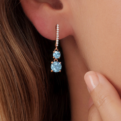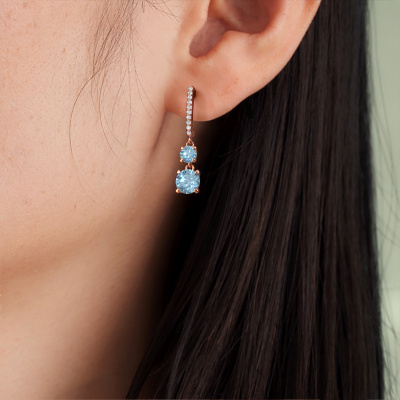 What could possibly be more stunning than a pair of stunning drop earrings? These rose gold Tanja 2 drop earrings are a true eye-catcher. These hanging drop earrings are set with round blue lab grown diamond. We collaborate with the best suppliers of gemstones and they select our gemstones with great care. Your drop earrings are made by hand in our own artisan studio by our expert goldsmiths.