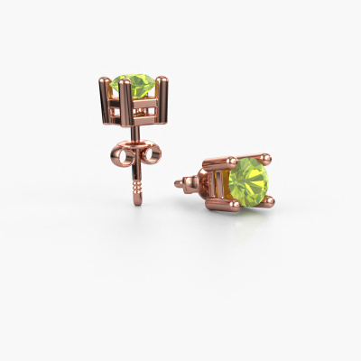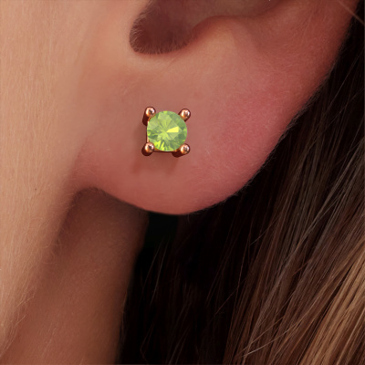 Solitaire stud earrings are both a traditional and a trendy piece of jewellery. Solitaire stud earrings have an open prong setting, therefore, light reflects beautifully on the gemstones. Because the peridot are set high, these traditional stud earrings are a stunning eye-catcher. We will create your solitaire stud earrings by hand with the utmost care in our DiamondsByMe studio. For maximum shine, our goldsmith sets the peridot in the rose gold stud earrings with great care. These solitaire stud earrings are set with round peridot of 5 mm. De Eline earrings are unique pieces of jewellery because they can be customized to your liking.. The best part of these solitaire stud earrings is that you can customize it to your own liking. Your style, your choice, your stud earrings. On top of that, your traditional rose gold stud earrings will be made by hand with eco-friendly materials! Please feel free to easily customize the stud earrings, using our online tool.Because we design and deliver our own stud earrings, we can offer you stud earrings at a price you won't find anywhere else. stud earrings are made to order, which helps prevent excess supplies, so we can make you a great price offer. We understand it feels risky, buying your stud earrings online, but we will gladly assist in the designing process, taking your budget into consideration. To make it easier for you, we offer a 30 day return policy. Check our terms and conditions.