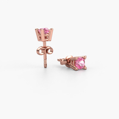 Solitaire stud earrings are both a modern and a trendy piece of jewellery. Solitaire stud earrings have an open prong setting, therefore, light reflects beautifully on the gemstones. Because the pink sapphire are set high, these modern stud earrings are a stunning eye-catcher. We will create your solitaire stud earrings by hand with the utmost care in our DiamondsByMe studio. For maximum shine, our goldsmith sets the pink sapphire in the rose gold stud earrings with great care. These solitaire stud earrings are set with round pink sapphire of 4 mm. De Cather earrings are made to embellish your ears. Each jewel is lovingly made by hand by our goldsmiths.. Customized modern solitaire stud earrings are the perfect gift! New exquisite designs are added daily by our team of passionate goldsmiths. And each design can be customized. Simply customize the precious metals and the colour of gemstones which will be used, for example. This makes your design of the modern Cather stud earrings truly unique!By using our modern techniques, we can design and customize the finest quality jewels with the utmost care for you. Our stud earrings are always priced 30 percent lower than other jewellers. We make stud earrings to order so we don't have to maintain a large stock. If you have a certain budget, we are more than happy to advice you accordingly. To make it easier for you, we offer a 30 day return policy. Check our terms and conditions.