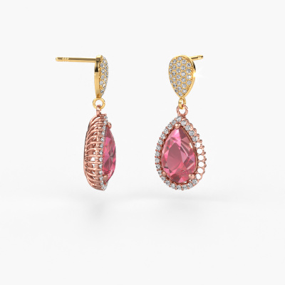 With a pair of exclusive drop earrings, every woman truly stands out. At DiamondsByMe, we create exclusive and extraordinary jewellery and we make use of the finest precious metals and gemstones. These exclusive rose gold drop earrings are a true work of art! Each tiny detail has been made with patience and passion by our expert jeweller. This requires a keen eye and skilful hand in order for the ring to be carefully created to perfection. And this is exactly what our expert jewellers strive for, perfection! The exquisite tourmaline pink are set in a way making them seem to shine even brighter. This gives the drop earrings an extra glamorous look. Shown above are our rose gold Tilly per 2 drop earrings, set with pear tourmaline pink. The Tilly per 2 earrings are made by a team of passionate goldsmiths and designers. This will make your unique crown jewel eye-catching.. Our goldsmiths passionately create your customized drop earrings to your liking with the utmost care. The rose gold set drop earrings, as shown here, can be customized using our online tool. Feel free to ask our jewel designers for assistance if you want changes made which are unavailable in our online tool. We are happy to answer your questions. Are you on a budget? Please feel free to contact us, so we can go discuss your options. We offer our drop earrings at guaranteed best price, because we make them to order. You won't find such a price anywhere else! To make it easier for you, we offer a 30 day return policy. Check our terms and conditions.