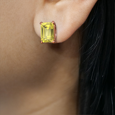 With a pair of exclusive stud earrings, every woman truly stands out. At DiamondsByMe, we create chic and extraordinary jewellery and we make use of the finest precious metals and gemstones. These exclusive rose gold stud earrings are a true work of art! Each tiny detail has been made with patience and passion by our expert jeweller. This requires a keen eye and skilful hand in order for the ring to be carefully created to perfection. And this is exactly what our expert jewellers strive for, perfection! The exquisite yellow lab grown diamonds are set in a way making them seem to shine even brighter. This gives the stud earrings an extra glamorous look. Shown above are our rose gold Sam EME stud earrings, set with emerald cut yellow lab grown diamond. The Sam EME earrings are passionately made by one of our master goldsmiths.. What could possibly be more beautiful than personally designed chic stud earrings, handmade by yours truly? Please, feel free to customize each model by choosing different precious metals and gemstones. This makes your stud earrings truly unique. These stud earrings can be customized to your liking. It goes without saying that you can also ask us for help. We are more than willing to assist in designing your chic stud earrings. If you like but still have specific wishes concerning customizing your design, such as adding a gemstone which isn't mentioned in the list, feel free to contact us. We will gladly inform you on different options. By using our modern techniques, we can design and customize the finest quality jewels with the utmost care for you. Our stud earrings are always priced 30 percent lower than other jewellers. We make stud earrings to order so we don't have to maintain a large stock. If you have a certain budget, we are more than happy to advice you accordingly. To make it easier for you, we offer a 30 day return policy. Check our terms and conditions.