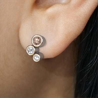 The Marlys stud earrings are set with stunning round brown diamond. We prefer them set with diamonds. But the best part, is that you get to choose. The Marlys, as shown here, are made of white gold. You are free to choose your gemstones and to customize the stud earrings to your liking. We carefully select each gemstone. We create your stud earrings by hand in our own artisan studio and make use of the latest techniques, combined with ancient craftsmanship. Easily customized to your liking with our online tool. Take these stud earrings set with 0.06 crt brown diamond, for example. The Marlys earrings are made to embellish your ears. Each jewel is lovingly made by hand by our goldsmiths.After receiving your order, our goldsmiths will start the creative process of making your Marlys stud earrings. We don't keep stock. This is advantageous because these costs will not be passed on to you. Therefore, we can offer jewellery at exceptionally low prices.To make it easier for you, we offer a 30 day return policy. Check our terms and conditions.