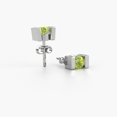 The Lieve stud earrings are set with stunning round peridot. We prefer them set with diamonds. But the best part, is that you get to choose. The Lieve, as shown here, are made of white gold. You are free to choose your gemstones and to customize the stud earrings to your liking. We carefully select each gemstone. We create your stud earrings by hand in our own artisan studio and make use of the latest techniques, combined with ancient craftsmanship. Easily customized to your liking with our online tool. Take these stud earrings set with 3.7 mm peridot, for example. The Lieve earrings are made by a team of passionate goldsmiths and designers. This will make your unique crown jewel eye-catching.Are you on a budget? Please feel free to contact us, so we can go discuss your options. We offer our stud earrings at guaranteed best price, because we make them to order. You won't find such a price anywhere else!To make it easier for you, we offer a 30 day return policy. Check our terms and conditions.