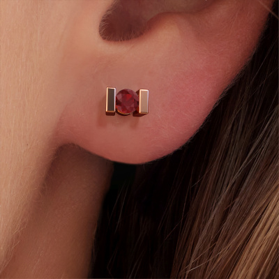 The Lieve stud earrings are set with stunning round ruby. We prefer them set with diamonds. But the best part, is that you get to choose. The Lieve, as shown here, are made of rose gold. You are free to choose your gemstones and to customize the stud earrings to your liking. We carefully select each gemstone. We create your stud earrings by hand in our own artisan studio and make use of the latest techniques, combined with ancient craftsmanship. Easily customized to your liking with our online tool. Take these stud earrings set with 3.7 mm ruby, for example. The Lieve earrings are made by a team of passionate goldsmiths and designers. This will make your unique crown jewel eye-catching.Are you on a budget? Please feel free to contact us, so we can go discuss your options. We offer our stud earrings at guaranteed best price, because we make them to order. You won't find such a price anywhere else!To make it easier for you, we offer a 30 day return policy. Check our terms and conditions.