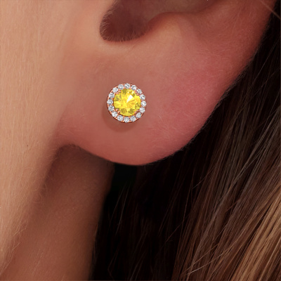 The Seline rnd earrings are set with stunning round yellow sapphire. We prefer them set with diamonds. But the best part, is that you get to choose. The Seline rnd, as shown here, are made of rose gold. You are free to choose your gemstones and to customize the earrings to your liking. We carefully select each gemstone. We create your earrings by hand in our own artisan studio and make use of the latest techniques, combined with ancient craftsmanship. Easily customized to your liking with our online tool. Take these earrings set with 4 mm yellow sapphire, for example. The Seline rnd earrings are passionately made by one of our master goldsmiths.Are you on a budget? Please feel free to contact us, so we can go discuss your options. We offer our earrings at guaranteed best price, because we make them to order. You won't find such a price anywhere else!To make it easier for you, we offer a 30 day return policy. Check our terms and conditions.