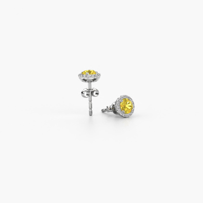 The Seline rnd earrings are set with stunning round yellow sapphire. We prefer them set with diamonds. But the best part, is that you get to choose. The Seline rnd, as shown here, are made of white gold. You are free to choose your gemstones and to customize the earrings to your liking. We carefully select each gemstone. We create your earrings by hand in our own artisan studio and make use of the latest techniques, combined with ancient craftsmanship. Easily customized to your liking with our online tool. Take these earrings set with 4 mm yellow sapphire, for example. The Seline rnd earrings are passionately made by one of our master goldsmiths.Are you on a budget? Please feel free to contact us, so we can go discuss your options. We offer our earrings at guaranteed best price, because we make them to order. You won't find such a price anywhere else!To make it easier for you, we offer a 30 day return policy. Check our terms and conditions.