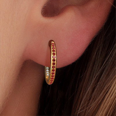 How would you describe your style? Are you looking for something slightly different? These contemporary charming gold hoop earrings are unique and created by our expert goldsmiths. These contemporary hoop earrings are set with ruby. Each of the ruby is carefully selected, because we believe your hoop earrings should be adorned with nothing but the most exquisite gemstones. Wouldn't you agree? The Sina 15mm earrings are made by a team of passionate goldsmiths and designers. This will make your unique crown jewel eye-catching.. The best part of these charming hoop earrings is that you can customize it to your own liking. Your style, your choice, your hoop earrings. On top of that, your contemporary gold hoop earrings will be made by hand with eco-friendly materials! Please feel free to easily customize the hoop earrings, using our online tool.After receiving your order, our goldsmiths will start the creative process of making your Sina 15mm hoop earrings. We don't keep stock. This is advantageous because these costs will not be passed on to you. Therefore, we can offer jewellery at exceptionally low prices. To make it easier for you, we offer a 30 day return policy. Check our terms and conditions.