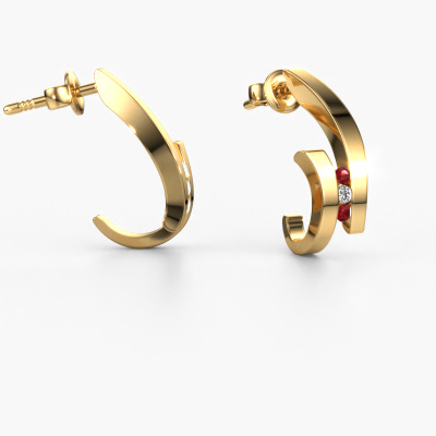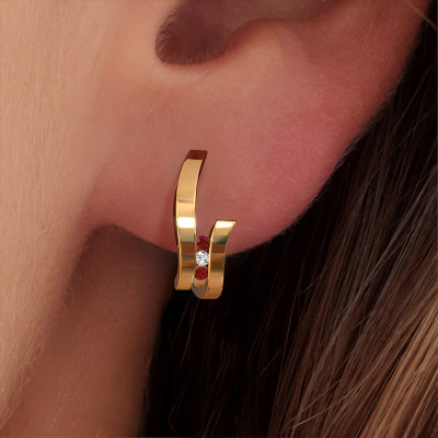 Each modern woman should own her own pair of modern earrings. Buy them from DiamondsByMe. In order to create our exquisite jewels, our expert goldsmiths use the best precious metals and the finest gemstones. Take this modern gold ruby set of Juliette earrings, for example. Each ruby is selected with great care, because we believe your earrings should only be adorned with the finest ruby gemstones. Our artisan goldsmiths create your earrings in our own crafting studio and they set the ruby in the earrings with the utmost care. Subsequently, they are crafted and polished until it is evident: the perfect earrings are done! The Juliette earrings are unique pieces of jewellery because they can be customized to your liking.. How do you like these modern gold earrings? Simply customize this Juliette earrings, using our online tool. Subsequently, your personal elegant Juliette earrings will be made by hand by our goldsmiths. Precious metals and gemstones can be customized to your liking. Do you have specific preferences which are unavailable in our online tool? Please feel free to contact us. We will customize your personal modern earrings to your liking. After receiving your order, our goldsmiths will start the creative process of making your Juliette earrings. We don't keep stock. This is advantageous because these costs will not be passed on to you. Therefore, we can offer jewellery at exceptionally low prices. To make it easier for you, we offer a 30 day return policy. Check our terms and conditions.