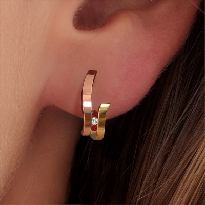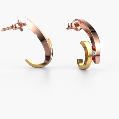 Each modern woman should own her own pair of modern earrings. Buy them from DiamondsByMe. In order to create our exquisite jewels, our expert goldsmiths use the best precious metals and the finest gemstones. Take this modern rose gold ruby set of Juliette earrings, for example. Each ruby is selected with great care, because we believe your earrings should only be adorned with the finest ruby gemstones. Our artisan goldsmiths create your earrings in our own crafting studio and they set the ruby in the earrings with the utmost care. Subsequently, they are crafted and polished until it is evident: the perfect earrings are done! The Juliette earrings are unique pieces of jewellery because they can be customized to your liking.. How do you like these modern rose gold earrings? Simply customize this Juliette earrings, using our online tool. Subsequently, your personal elegant Juliette earrings will be made by hand by our goldsmiths. Precious metals and gemstones can be customized to your liking. Do you have specific preferences which are unavailable in our online tool? Please feel free to contact us. We will customize your personal modern earrings to your liking. After receiving your order, our goldsmiths will start the creative process of making your Juliette earrings. We don't keep stock. This is advantageous because these costs will not be passed on to you. Therefore, we can offer jewellery at exceptionally low prices. To make it easier for you, we offer a 30 day return policy. Check our terms and conditions.