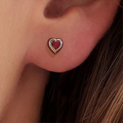 How would you describe your style? Are you looking for something slightly different? These fantasy heart white gold stud earrings are unique and created by our expert goldsmiths. These fantasy stud earrings are set with ruby. Each of the ruby is carefully selected, because we believe your stud earrings should be adorned with nothing but the most exquisite gemstones. Wouldn't you agree? The Charlotte earrings are made just for you by our master goldsmith in our own artisan studio.. What could possibly be more beautiful than personally designed fantasy stud earrings, handmade by yours truly? Please, feel free to customize each model by choosing different precious metals and gemstones. This makes your stud earrings truly unique. These stud earrings can be customized to your liking. It goes without saying that you can also ask us for help. We are more than willing to assist in designing your fantasy stud earrings. If you like but still have specific wishes concerning customizing your design, such as adding a gemstone which isn't mentioned in the list, feel free to contact us. We will gladly inform you on different options.After receiving your order, our goldsmiths will start the creative process of making your Charlotte stud earrings. We don't keep stock. This is advantageous because these costs will not be passed on to you. Therefore, we can offer jewellery at exceptionally low prices. To make it easier for you, we offer a 30 day return policy. Check our terms and conditions.