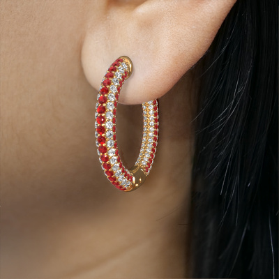 This set of special Hope 15mm hoop earrings are beautiful small hoop earrings to finish off your look. Our expert jewellers combine the latest techniques with ancient craftsmanship. They make your hoop earrings by hand in our own crafting studio. The ruby of your choosing are set in your hoop earrings with the utmost precision, so light reflects evenly from every angle. In the end you get stunning, unique hoop earrings that match your own style perfectly! Take these gold hoop earrings set with ruby 1 mm, for example. Customized unique special hoop earrings are the perfect gift! New exquisite designs are added daily by our team of passionate goldsmiths. And each design can be customized. Simply customize the precious metals and the colour of gemstones which will be used, for example. This makes your design of the unique Hope 15mm hoop earrings truly unique!The Hope 15mm earrings are made just for you by our master goldsmith in our own artisan studio.After receiving your order, our goldsmiths will passionately start the creative process of making your hoop earrings in our own studio. Because we don't have a big stockpile, these costs will not be passed on to you. Our pricing is proof of that! We offer top quality jewels at lowest price, guaranteed.To make it easier for you, we offer a 30 day return policy. Check our terms and conditions.