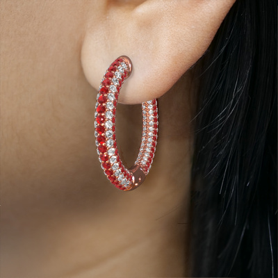 This set of special Hope 15mm hoop earrings are beautiful small hoop earrings to finish off your look. Our expert jewellers combine the latest techniques with ancient craftsmanship. They make your hoop earrings by hand in our own crafting studio. The ruby of your choosing are set in your hoop earrings with the utmost precision, so light reflects evenly from every angle. In the end you get stunning, unique hoop earrings that match your own style perfectly! Take these rose gold hoop earrings set with ruby 1 mm, for example. Customized unique special hoop earrings are the perfect gift! New exquisite designs are added daily by our team of passionate goldsmiths. And each design can be customized. Simply customize the precious metals and the colour of gemstones which will be used, for example. This makes your design of the unique Hope 15mm hoop earrings truly unique!The Hope 15mm earrings are made just for you by our master goldsmith in our own artisan studio.After receiving your order, our goldsmiths will passionately start the creative process of making your hoop earrings in our own studio. Because we don't have a big stockpile, these costs will not be passed on to you. Our pricing is proof of that! We offer top quality jewels at lowest price, guaranteed.To make it easier for you, we offer a 30 day return policy. Check our terms and conditions.