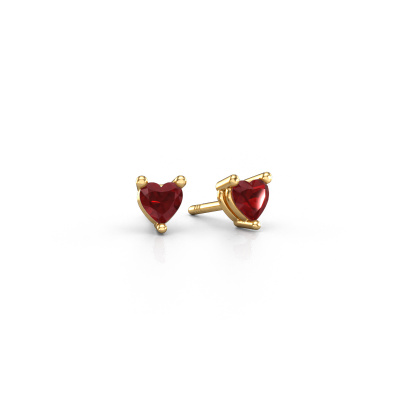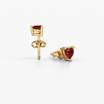How would you describe your style? Are you looking for something slightly different? These trendy heart gold stud earrings are unique and created by our expert goldsmiths. These trendy stud earrings are set with ruby. Each of the ruby is carefully selected, because we believe your stud earrings should be adorned with nothing but the most exquisite gemstones. Wouldn't you agree? The Garnet earrings are made to embellish your ears. Each jewel is lovingly made by hand by our goldsmiths.. Our goldsmiths passionately create your customized stud earrings to your liking with the utmost care. The gold set stud earrings, as shown here, can be customized using our online tool. Feel free to ask our jewel designers for assistance if you want changes made which are unavailable in our online tool. We are happy to answer your questions.Are you on a budget? Please feel free to contact us, so we can go discuss your options. We offer our stud earrings at guaranteed best price, because we make them to order. You won't find such a price anywhere else! To make it easier for you, we offer a 30 day return policy. Check our terms and conditions.
