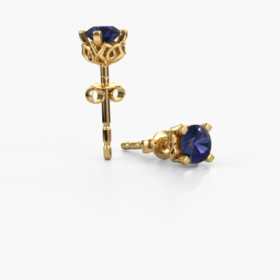 The solitaire gold Ize earrings are set with stunning round sapphire. These earrings are ideally combined with coloured gemstones, but if you prefer other gemstones, feel free to choose from our collection. Our expert jewellers would love to create handmade earrings for you in our own crafting studio. We use a unique concept, a perfect combination of ancient craftsmanship and the latest modern techniques. This enables us to design your earrings to perfection. The earrings, as shown here, are set with sapphire 5 mm. The best part of these solitaire earrings is that you can customize it to your own liking. Your style, your choice, your earrings. On top of that, your vintage gold earrings will be made by hand with eco-friendly materials! Please feel free to easily customize the earrings, using our online tool.De Ize earrings are made just for you by our master goldsmith in our own artisan studio.Are you on a budget? Please feel free to contact us, so we can go discuss your options. We offer our earrings at guaranteed best price, because we make them to order. You won't find such a price anywhere else!To make it easier for you, we offer a 30 day return policy. Check our terms and conditions.