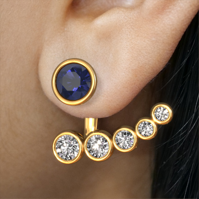 How would you describe your style? Are you looking for something slightly different? These contemporary special gold earrings are unique and created by our expert goldsmiths. These contemporary earrings are set with sapphire. Each of the sapphire is carefully selected, because we believe your earrings should be adorned with nothing but the most exquisite gemstones. Wouldn't you agree? The Wendy earrings are passionately made by one of our master goldsmiths.. Customized contemporary special earrings are the perfect gift! New exquisite designs are added daily by our team of passionate goldsmiths. And each design can be customized. Simply customize the precious metals and the colour of gemstones which will be used, for example. This makes your design of the contemporary Wendy earrings truly unique!Because we design and deliver our own earrings, we can offer you earrings at a price you won't find anywhere else. earrings are made to order, which helps prevent excess supplies, so we can make you a great price offer. We understand it feels risky, buying your earrings online, but we will gladly assist in the designing process, taking your budget into consideration. To make it easier for you, we offer a 30 day return policy. Check our terms and conditions.
