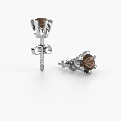 Solitaire stud earrings are classic yet fashionable pieces of jewellery. In solitaire stud earrings, the prong setting is open and only 1 stone is set, which helps reflect light on the gemstone from every angle. Because the smokey quartz are positioned higher, these classic stud earrings become truly eye-catching. We carefully create each detail of these solitaire stud earrings by hand. Our expert goldsmiths set the smokey quartz in these white gold stud earrings with the utmost precision, so light reflects evenly from every angle. The stud earrings are set with 4 mm round smokey quartz. The Shana earrings are made just for you by our master goldsmith in our own artisan studio.. Our goldsmiths passionately create your customized stud earrings to your liking with the utmost care. The white gold set stud earrings, as shown here, can be customized using our online tool. Feel free to ask our jewel designers for assistance if you want changes made which are unavailable in our online tool. We are happy to answer your questions. Are you on a budget? Please feel free to contact us, so we can go discuss your options. We offer our stud earrings at guaranteed best price, because we make them to order. You won't find such a price anywhere else! To make it easier for you, we offer a 30 day return policy. Check our terms and conditions.