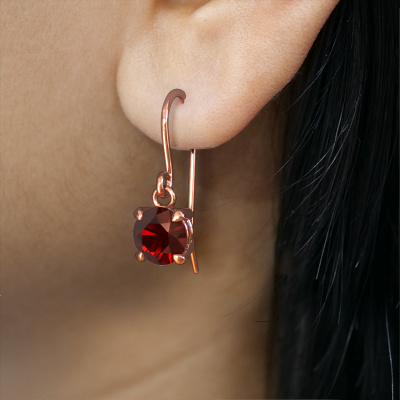 This is our set of classic Laurie RND 1 drop earrings. In this example the drop earrings are set with round garnet. Each of our garnet gemstones is carefully selected and positioned in your drop earrings with great precision so light hits the garnet from every angle. We believe these solitaire rose gold drop earrings look best set with coloured gemstones. But that is entirely up to you. As soon as you finished designing your classic drop earrings with our online tool, our goldsmiths will start their creative process of making your drop earrings. This will be done with passion and care, according ancient crafting. On top of that, our jewels are made of eco-friendly materials. If you want specific changes made to your Laurie RND 1 drop earrings, that are unavailable in our online tool, please feel free to contact our expert designers.Are you on a budget? Please feel free to contact us, so we can go discuss your options. We offer our drop earrings at guaranteed best price, because we make them to order. You won't find such a price anywhere else!To make it easier for you, we offer a 30 day return policy. Check our terms and conditions.