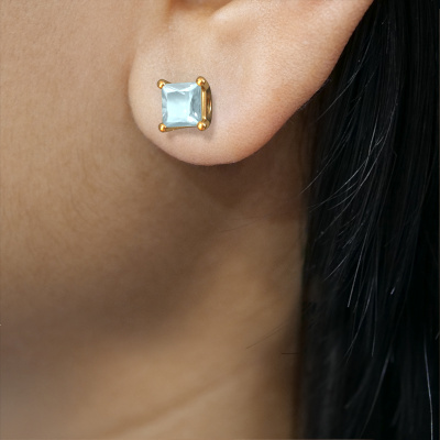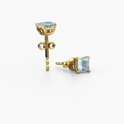 Solitaire stud earrings are contemporary yet fashionable pieces of jewellery. In solitaire stud earrings, the prong setting is open and only 1 stone is set, which helps reflect light on the gemstone from every angle. Because the aquamarine are positioned higher, these contemporary stud earrings become truly eye-catching. We carefully create each detail of these solitaire stud earrings by hand. Our expert goldsmiths set the aquamarine in these gold stud earrings with the utmost precision, so light reflects evenly from every angle. The stud earrings are set with 4 mm princess aquamarine. The Sam SQR earrings are made to embellish your ears. Each jewel is lovingly made by hand by our goldsmiths.. Our goldsmiths passionately create your customized stud earrings to your liking with the utmost care. The gold set stud earrings, as shown here, can be customized using our online tool. Feel free to ask our jewel designers for assistance if you want changes made which are unavailable in our online tool. We are happy to answer your questions. By using a combination of the latest modern techniques, combined with ancient crafting, we can make all our stud earrings in our own studio. Each jewel is made to order. This is advantageous because we can offer you a price you won't find anywhere else. To make it easier for you, we offer a 30 day return policy. Check our terms and conditions.