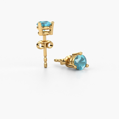 Solitaire stud earrings are classic yet fashionable pieces of jewellery. In solitaire stud earrings, the prong setting is open and only 1 stone is set, which helps reflect light on the gemstone from every angle. Because the blue topaz are positioned higher, these classic stud earrings become truly eye-catching. We carefully create each detail of these solitaire stud earrings by hand. Our expert goldsmiths set the blue topaz in these gold stud earrings with the utmost precision, so light reflects evenly from every angle. The stud earrings are set with 4.7 mm round blue topaz. The Somer earrings are made just for you by our master goldsmith in our own artisan studio.. As soon as you finished designing your classic stud earrings with our online tool, our goldsmiths will start their creative process of making your stud earrings. This will be done with passion and care, according ancient crafting. On top of that, our jewels are made of eco-friendly materials. If you want specific changes made to your Somer stud earrings, that are unavailable in our online tool, please feel free to contact our expert designers. By using our modern techniques, we can design and customize the finest quality jewels with the utmost care for you. Our stud earrings are always priced 30 percent lower than other jewellers. We make stud earrings to order so we don't have to maintain a large stock. If you have a certain budget, we are more than happy to advice you accordingly. To make it easier for you, we offer a 30 day return policy. Check our terms and conditions.