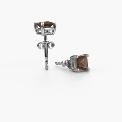 Solitaire stud earrings are contemporary yet fashionable pieces of jewellery. In solitaire stud earrings, the prong setting is open and only 1 stone is set, which helps reflect light on the gemstone from every angle. Because the smokey quartz are positioned higher, these contemporary stud earrings become truly eye-catching. We carefully create each detail of these solitaire stud earrings by hand. Our expert goldsmiths set the smokey quartz in these white gold stud earrings with the utmost precision, so light reflects evenly from every angle. The stud earrings are set with 4 mm princess smokey quartz. The Sam square earrings are made to embellish your ears. Each jewel is lovingly made by hand by our goldsmiths.. Our goldsmiths passionately create your customized stud earrings to your liking with the utmost care. The white gold set stud earrings, as shown here, can be customized using our online tool. Feel free to ask our jewel designers for assistance if you want changes made which are unavailable in our online tool. We are happy to answer your questions. By using a combination of the latest modern techniques, combined with ancient crafting, we can make all our stud earrings in our own studio. Each jewel is made to order. This is advantageous because we can offer you a price you won't find anywhere else. To make it easier for you, we offer a 30 day return policy. Check our terms and conditions.