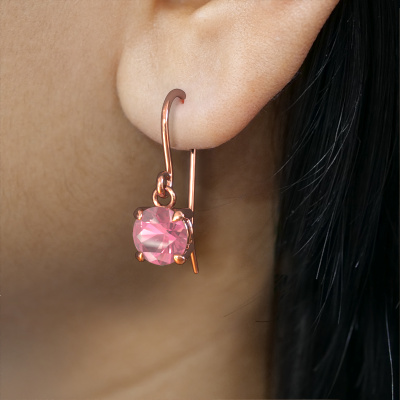 This is our set of classic Laurie RND 1 drop earrings. In this example the drop earrings are set with round tourmaline pink. Each of our tourmaline pink gemstones is carefully selected and positioned in your drop earrings with great precision so light hits the tourmaline pink from every angle. We believe these solitaire rose gold drop earrings look best set with coloured gemstones. But that is entirely up to you. As soon as you finished designing your classic drop earrings with our online tool, our goldsmiths will start their creative process of making your drop earrings. This will be done with passion and care, according ancient crafting. On top of that, our jewels are made of eco-friendly materials. If you want specific changes made to your Laurie RND 1 drop earrings, that are unavailable in our online tool, please feel free to contact our expert designers.Are you on a budget? Please feel free to contact us, so we can go discuss your options. We offer our drop earrings at guaranteed best price, because we make them to order. You won't find such a price anywhere else!To make it easier for you, we offer a 30 day return policy. Check our terms and conditions.