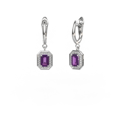If you are looking for modern and personal drop earrings, then these will fit you perfectly. You have the option to add your birthstones to these drop earrings. Each month has its own birthstone. You may use your own birthstone gemstone or that of your children. A priceless gift, even if it is for yourself. Our expert jeweller will set the selected stones in your drop earrings with utter precision, so light reflects evenly from every angle. Here, 6x4 mm emerald cut amethysten gemstones were used to adorn these platinum special Dodie 1 drop earrings. The Dodie 1 made just for you, with great attention to detail and design.. How do you like these modern platinum drop earrings? Simply customize this Dodie 1 drop earrings, using our online tool. Subsequently, your personal special Dodie 1 drop earrings will be made by hand by our goldsmiths. Precious metals and gemstones can be customized to your liking. Do you have specific preferences which are unavailable in our online tool? Please feel free to contact us. We will customize your personal modern drop earrings to your liking. After receiving your order, our goldsmiths will start the creative process of making your Dodie 1 drop earrings. We don't keep stock. This is advantageous because these costs will not be passed on to you. Therefore, we can offer jewellery at exceptionally low prices.To make it easier for you, we offer a 30 day return policy. Check our terms and conditions.