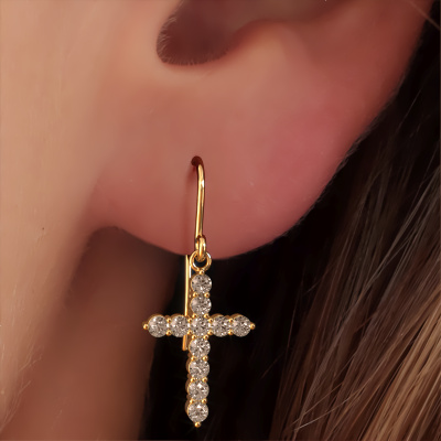 This is our set of fantasy Cross drop earrings. In this example the drop earrings are set with round brown diamond. Each of our brown diamonds gemstones is carefully selected and positioned in your drop earrings with great precision so light hits the brown diamond from every angle. We believe these symbolic gold drop earrings look best set with coloured gemstones. But that is entirely up to you. The best part of these symbolic drop earrings is that you can customize it to your own liking. Your style, your choice, your drop earrings. On top of that, your fantasy gold drop earrings will be made by hand with eco-friendly materials! Please feel free to easily customize the drop earrings, using our online tool.After receiving your order, our goldsmiths will passionately start the creative process of making your drop earrings in our own studio. Because we don't have a big stockpile, these costs will not be passed on to you. Our pricing is proof of that! We offer top quality jewels at lowest price, guaranteed.To make it easier for you, we offer a 30 day return policy. Check our terms and conditions.