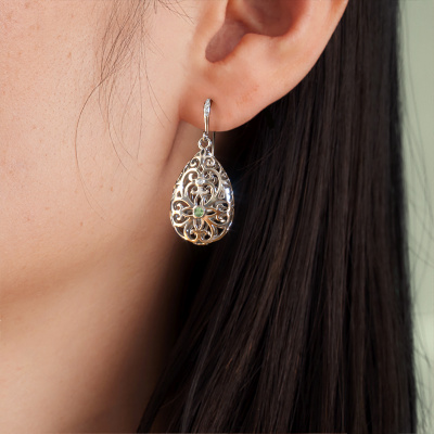 How would you describe your style? Are you looking for something slightly different? These unique filigree white gold drop earrings are unique and created by our expert goldsmiths. These unique drop earrings are set with tourmaline green. Each of the tourmaline green is carefully selected, because we believe your drop earrings should be adorned with nothing but the most exquisite gemstones. Wouldn't you agree? The Idalia 2 earrings are unique pieces of jewellery because they can be customized to your liking.. Our goldsmiths passionately create your customized drop earrings to your liking with the utmost care. The white gold set drop earrings, as shown here, can be customized using our online tool. Feel free to ask our jewel designers for assistance if you want changes made which are unavailable in our online tool. We are happy to answer your questions.After receiving your order, our goldsmiths will start the creative process of making your Idalia 2 drop earrings. We don't keep stock. This is advantageous because these costs will not be passed on to you. Therefore, we can offer jewellery at exceptionally low prices. To make it easier for you, we offer a 30 day return policy. Check our terms and conditions.