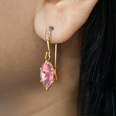 Each modern woman should own her own pair of fashionable drop earrings. Buy them from DiamondsByMe. In order to create our exquisite jewels, our expert goldsmiths use the best precious metals and the finest gemstones. Take this fashionable gold tourmaline pink set of Laurie MRQ 2 drop earrings, for example. Each tourmaline pink is selected with great care, because we believe your drop earrings should only be adorned with the finest tourmaline pink gemstones. Our artisan goldsmiths create your drop earrings in our own crafting studio and they set the tourmaline pink in the drop earrings with the utmost care. Subsequently, they are crafted and polished until it is evident: the perfect drop earrings are done! The Laurie MRQ 2 earrings are passionately made by one of our master goldsmiths.. Customized fashionable affordable drop earrings are the perfect gift! New exquisite designs are added daily by our team of passionate goldsmiths. And each design can be customized. Simply customize the precious metals and the colour of gemstones which will be used, for example. This makes your design of the fashionable Laurie MRQ 2 drop earrings truly unique! After receiving your order, our goldsmiths will passionately start the creative process of making your drop earrings in our own studio. Because we don't have a big stockpile, these costs will not be passed on to you. Our pricing is proof of that! We offer top quality jewels at lowest price, guaranteed. To make it easier for you, we offer a 30 day return policy. Check our terms and conditions.