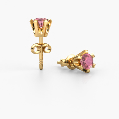 Solitaire stud earrings are classic yet fashionable pieces of jewellery. In solitaire stud earrings, the prong setting is open and only 1 stone is set, which helps reflect light on the gemstone from every angle. Because the tourmaline pink are positioned higher, these classic stud earrings become truly eye-catching. We carefully create each detail of these solitaire stud earrings by hand. Our expert goldsmiths set the tourmaline pink in these gold stud earrings with the utmost precision, so light reflects evenly from every angle. The stud earrings are set with 4 mm round tourmaline pink. The Shana earrings are made just for you by our master goldsmith in our own artisan studio.. Our goldsmiths passionately create your customized stud earrings to your liking with the utmost care. The gold set stud earrings, as shown here, can be customized using our online tool. Feel free to ask our jewel designers for assistance if you want changes made which are unavailable in our online tool. We are happy to answer your questions. Are you on a budget? Please feel free to contact us, so we can go discuss your options. We offer our stud earrings at guaranteed best price, because we make them to order. You won't find such a price anywhere else! To make it easier for you, we offer a 30 day return policy. Check our terms and conditions.