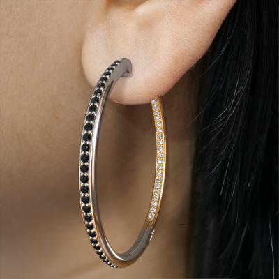 With a pair of exclusive hoop earrings, every woman truly stands out. At DiamondsByMe, we create exclusive and extraordinary jewellery and we make use of the finest precious metals and gemstones. These exclusive white gold hoop earrings are a true work of art! Each tiny detail has been made with patience and passion by our expert jeweller. This requires a keen eye and skilful hand in order for the ring to be carefully created to perfection. And this is exactly what our expert jewellers strive for, perfection! The exquisite black diamonds are set in a way making them seem to shine even brighter. This gives the hoop earrings an extra glamorous look. Shown above are our white gold Sina 30mm hoop earrings, set with round black diamond. The Sina 30mm earrings are made to embellish your ears. Each jewel is lovingly made by hand by our goldsmiths.. Customized exclusive elegant hoop earrings are the perfect gift! New exquisite designs are added daily by our team of passionate goldsmiths. And each design can be customized. Simply customize the precious metals and the colour of gemstones which will be used, for example. This makes your design of the exclusive Sina 30mm hoop earrings truly unique! After receiving your order, our goldsmiths will start the creative process of making your Sina 30mm hoop earrings. We don't keep stock. This is advantageous because these costs will not be passed on to you. Therefore, we can offer jewellery at exceptionally low prices. To make it easier for you, we offer a 30 day return policy. Check our terms and conditions.