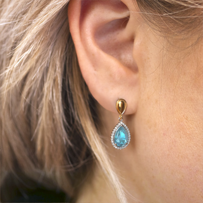 With a pair of exclusive drop earrings, every woman truly stands out. At DiamondsByMe, we create exclusive and extraordinary jewellery and we make use of the finest precious metals and gemstones. These exclusive white gold drop earrings are a true work of art! Each tiny detail has been made with patience and passion by our expert jeweller. This requires a keen eye and skilful hand in order for the ring to be carefully created to perfection. And this is exactly what our expert jewellers strive for, perfection! The exquisite blue topaz are set in a way making them seem to shine even brighter. This gives the drop earrings an extra glamorous look. Shown above are our white gold Tilly per 1 drop earrings, set with pear blue topaz. The Tilly per 1 earrings are made just for you by our master goldsmith in our own artisan studio.. As soon as you finished designing your exclusive drop earrings with our online tool, our goldsmiths will start their creative process of making your drop earrings. This will be done with passion and care, according ancient crafting. On top of that, our jewels are made of eco-friendly materials. If you want specific changes made to your Tilly per 1 drop earrings, that are unavailable in our online tool, please feel free to contact our expert designers. Because we design and deliver our own drop earrings, we can offer you drop earrings at a price you won't find anywhere else. drop earrings are made to order, which helps prevent excess supplies, so we can make you a great price offer. We understand it feels risky, buying your drop earrings online, but we will gladly assist in the designing process, taking your budget into consideration. To make it easier for you, we offer a 30 day return policy. Check our terms and conditions.
