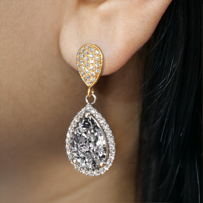 With a pair of exclusive drop earrings, every woman truly stands out. At DiamondsByMe, we create exclusive and extraordinary jewellery and we make use of the finest precious metals and gemstones. These exclusive white gold drop earrings are a true work of art! Each tiny detail has been made with patience and passion by our expert jeweller. This requires a keen eye and skilful hand in order for the ring to be carefully created to perfection. And this is exactly what our expert jewellers strive for, perfection! The exquisite custom diamonds are set in a way making them seem to shine even brighter. This gives the drop earrings an extra glamorous look. Shown above are our white gold Tilly per 2 drop earrings, set with pear custom diamond. The Tilly per 2 earrings are made by a team of passionate goldsmiths and designers. This will make your unique crown jewel eye-catching.. Our goldsmiths passionately create your customized drop earrings to your liking with the utmost care. The white gold set drop earrings, as shown here, can be customized using our online tool. Feel free to ask our jewel designers for assistance if you want changes made which are unavailable in our online tool. We are happy to answer your questions. Are you on a budget? Please feel free to contact us, so we can go discuss your options. We offer our drop earrings at guaranteed best price, because we make them to order. You won't find such a price anywhere else! To make it easier for you, we offer a 30 day return policy. Check our terms and conditions.