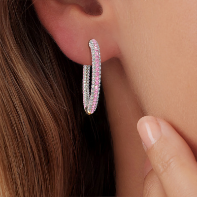 With a pair of exclusive hoop earrings, every woman truly stands out. At DiamondsByMe, we create exclusive and extraordinary jewellery and we make use of the finest precious metals and gemstones. These exclusive white gold hoop earrings are a true work of art! Each tiny detail has been made with patience and passion by our expert jeweller. This requires a keen eye and skilful hand in order for the ring to be carefully created to perfection. And this is exactly what our expert jewellers strive for, perfection! The exquisite pink sapphire are set in a way making them seem to shine even brighter. This gives the hoop earrings an extra glamorous look. Shown above are our white gold Hope 20mm hoop earrings, set with round pink sapphire. The Hope 20mm earrings are passionately made by one of our master goldsmiths.. How do you like these exclusive white gold hoop earrings? Simply customize this Hope 20mm hoop earrings, using our online tool. Subsequently, your personal best prices Hope 20mm hoop earrings will be made by hand by our goldsmiths. Precious metals and gemstones can be customized to your liking. Do you have specific preferences which are unavailable in our online tool? Please feel free to contact us. We will customize your personal exclusive hoop earrings to your liking. Are you on a budget? Please feel free to contact us, so we can go discuss your options. We offer our hoop earrings at guaranteed best price, because we make them to order. You won't find such a price anywhere else! To make it easier for you, we offer a 30 day return policy. Check our terms and conditions.