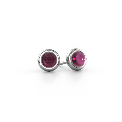 If you are looking for modern and personal stud earrings, then these will fit you perfectly. You have the option to add your birthstones to these stud earrings. Each month has its own birthstone. You may use your own birthstone gemstone or that of your children. A priceless gift, even if it is for yourself. Our expert jeweller will set the selected stones in your stud earrings with utter precision, so light reflects evenly from every angle. Here, 4,5 mm round cabochon rhodolite gemstones were used to adorn these white gold round Jodi stud earrings. The Jodi made just for you, with great attention to detail and design.. Our goldsmiths passionately create your customized stud earrings to your liking with the utmost care. The white gold set stud earrings, as shown here, can be customized using our online tool. Feel free to ask our jewel designers for assistance if you want changes made which are unavailable in our online tool. We are happy to answer your questions. Because we design and deliver our own stud earrings, we can offer you stud earrings at a price you won't find anywhere else. stud earrings are made to order, which helps prevent excess supplies, so we can make you a great price offer. We understand it feels risky, buying your stud earrings online, but we will gladly assist in the designing process, taking your budget into consideration.To make it easier for you, we offer a 30 day return policy. Check our terms and conditions.