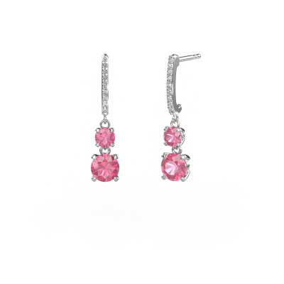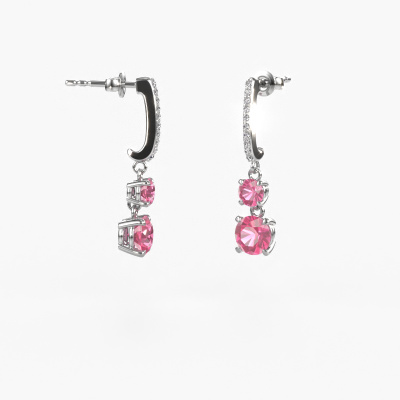 What could possibly be more stunning than a pair of stunning drop earrings? These white gold Tanja 2 drop earrings are a true eye-catcher. These hanging drop earrings are set with round pink sapphire. We collaborate with the best suppliers of gemstones and they select our gemstones with great care. Your drop earrings are made by hand in our own artisan studio by our expert goldsmiths. The best part of these hanging drop earrings is that you can customize it to your own liking. Your style, your choice, your drop earrings. On top of that, your exclusive white gold drop earrings will be made by hand with eco-friendly materials! Please feel free to easily customize the drop earrings, using our online tool.Because we design and deliver our own drop earrings, we can offer you drop earrings at a price you won't find anywhere else. drop earrings are made to order, which helps prevent excess supplies, so we can make you a great price offer. We understand it feels risky, buying your drop earrings online, but we will gladly assist in the designing process, taking your budget into consideration.To make it easier for you, we offer a 30 day return policy. Check our terms and conditions.