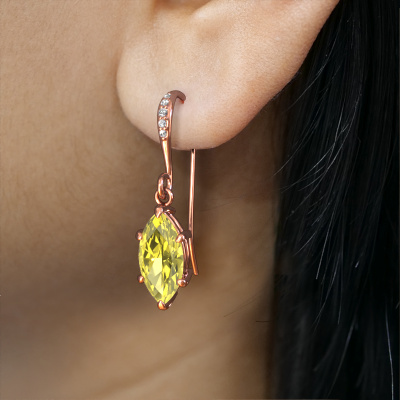 Each modern woman should own her own pair of fashionable drop earrings. Buy them from DiamondsByMe. In order to create our exquisite jewels, our expert goldsmiths use the best precious metals and the finest gemstones. Take this fashionable rose gold yellow lab grown diamond set of Laurie MRQ 2 drop earrings, for example. Each yellow lab grown diamond is selected with great care, because we believe your drop earrings should only be adorned with the finest yellow lab grown diamonds gemstones. Our artisan goldsmiths create your drop earrings in our own crafting studio and they set the yellow lab grown diamond in the drop earrings with the utmost care. Subsequently, they are crafted and polished until it is evident: the perfect drop earrings are done! The Laurie MRQ 2 earrings are passionately made by one of our master goldsmiths.. Customized fashionable affordable drop earrings are the perfect gift! New exquisite designs are added daily by our team of passionate goldsmiths. And each design can be customized. Simply customize the precious metals and the colour of gemstones which will be used, for example. This makes your design of the fashionable Laurie MRQ 2 drop earrings truly unique! After receiving your order, our goldsmiths will passionately start the creative process of making your drop earrings in our own studio. Because we don't have a big stockpile, these costs will not be passed on to you. Our pricing is proof of that! We offer top quality jewels at lowest price, guaranteed. To make it easier for you, we offer a 30 day return policy. Check our terms and conditions.