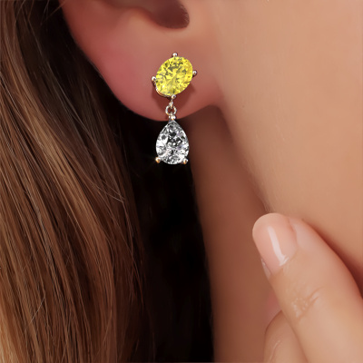 The graceful white gold Toi et Moi OVL-PER earrings are set with stunning oval yellow lab grown diamonds. These earrings are ideally combined with coloured gemstones, but if you prefer other gemstones, feel free to choose from our collection. Our expert jewellers would love to create handmade earrings for you in our own crafting studio. We use a unique concept, a perfect combination of ancient craftsmanship and the latest modern techniques. This enables us to design your earrings to perfection. The earrings, as shown here, are set with yellow lab grown diamond 8x6 mm. The best part of these graceful earrings is that you can customize it to your own liking. Your style, your choice, your earrings. On top of that, your exclusive white gold earrings will be made by hand with eco-friendly materials! Please feel free to easily customize the earrings, using our online tool.De Toi et Moi OVL-PER earrings are made to embellish your ears. Each jewel is lovingly made by hand by our goldsmiths.After receiving your order, our goldsmiths will passionately start the creative process of making your earrings in our own studio. Because we don't have a big stockpile, these costs will not be passed on to you. Our pricing is proof of that! We offer top quality jewels at lowest price, guaranteed.To make it easier for you, we offer a 30 day return policy. Check our terms and conditions.