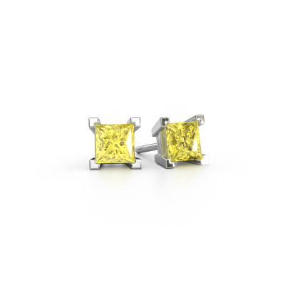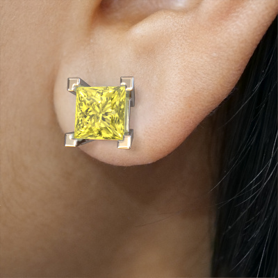 The solitaire white gold Ariane stud earrings are set with stunning princess yellow lab grown diamonds. These stud earrings are ideally combined with coloured gemstones, but if you prefer other gemstones, feel free to choose from our collection. Our expert jewellers would love to create handmade stud earrings for you in our own crafting studio. We use a unique concept, a perfect combination of ancient craftsmanship and the latest modern techniques. This enables us to design your stud earrings to perfection. The stud earrings, as shown here, are set with yellow lab grown diamond 5 mm. The best part of these solitaire stud earrings is that you can customize it to your own liking. Your style, your choice, your stud earrings. On top of that, your modern white gold stud earrings will be made by hand with eco-friendly materials! Please feel free to easily customize the stud earrings, using our online tool.De Ariane earrings are passionately made by one of our master goldsmiths.Because we design and deliver our own stud earrings, we can offer you stud earrings at a price you won't find anywhere else. stud earrings are made to order, which helps prevent excess supplies, so we can make you a great price offer. We understand it feels risky, buying your stud earrings online, but we will gladly assist in the designing process, taking your budget into consideration.To make it easier for you, we offer a 30 day return policy. Check our terms and conditions.